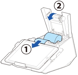 Vedä ulos hieman paperia ja sulje paperirullan kansi.