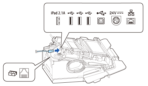 周辺機器のインターフェイスケーブルを、プリンター内部のコネクターに接続します。