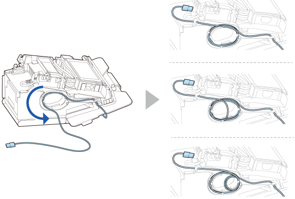 Lai pielāgotu kabeļa garumu, satiniet to printera sānā, kā parādīts tālāk.
