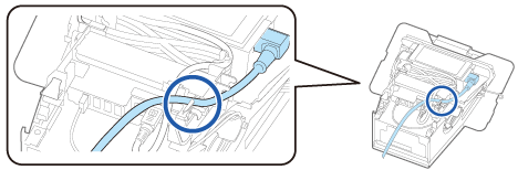 De ligging van de kabel verschilt afhankelijk van de richting waarin u deze uit de printer leidt.