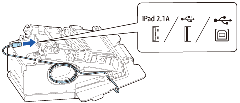 Merknad:Hvis nettbrettet ditt ikke kan kobles til kontakten på skriveren, drar du kabelen til nettbrettet ut gjennom utskjæringen på skriveren.