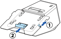 Betjen låsespaken for å trekke ut den nedre nettbrettholderen.