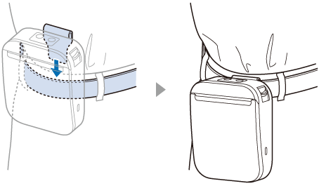 通过将皮带夹固定到皮带上,您可以将打印机挂在腰间。