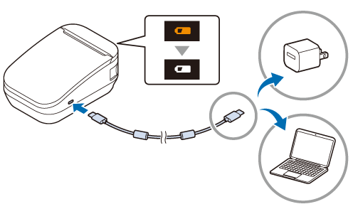 Remarque :Lorsque l’imprimante est utilisée pour la première fois, la batterie doit être chargée pendant environ 2,5 heures.