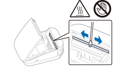 ATTENTION :Après l'impression, la tête thermique et ses environs peuvent être très chauds. Faites attention à ne pas la toucher et laissez-la refroidir avant de la nettoyer.