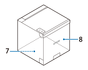 Отстранете ги овие капаци кога го поврзувате DC-кабелот на AC-адаптерот, каблите за интерфејс или УСБ-каблите на периферните уреди. Исто така, кога сакате да ја промените насоката за излез на хартијата, отстранете ги двата капака и повторно прикачете ги така што ќе ја промените положбата на прикачувањето. |