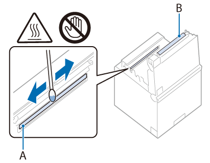 Исчистете ја термалната глава со памучна чепкалка навлажнета со алкохолен растворувач (етанол или изопропил алкохол), а плочата на ролната со малку навлажнета памучна чепкалка.