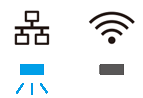 Normal status. Skriveren er utskriftsklar. Hvis du ikke kan skrive ut, kan du kontrollere kommunikasjonsstatusen mellom skriveren og enheten. Kommunikasjonsstatusen kan kontrolleres med LED-lampene for Ethernet og Wi-Fi. |