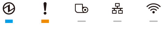 Običajno stanje. Tiskalnik je pripravljen za tiskanje. Če ne morete tiskati, preverite stanje komunikacije med tiskalnikom in napravo. Stanje komunikacije je mogoče preveriti na kazalniku LED za ethernet in kazalniku LED za Wi-Fi. |