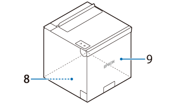 ACアダプターのDCケーブルやインターフェイスケーブル、周辺機器のUSBケーブルなどを接続するときに開けます。また、ロール紙の排出方向を変えたいときに、背面カバーと底面カバーを付け替えます。 |