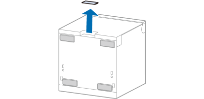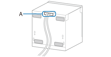 製品本体の右側または左側、および底面からケーブルを引き出す場合は、背面中央の引き出し口にケーブル引き出し口カバーを付けて、引き出し口を隠しておくことができます。