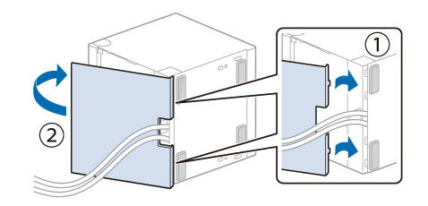 背面カバーと底面カバーを取り付ける位置によって、ロール紙の排紙方向が変わります。ご使用になる環境に合わせて選択してください。