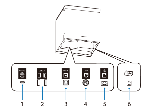 小心:平板电脑或智能手机等智能设备连接到USB-C接口(兼容USB-PD)时,打印机的Bluetooth(蓝牙)功能将被禁用。