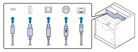 将交流适配器的电缆和平板电脑或计算机等设备的电缆连接到打印机底部的接口。