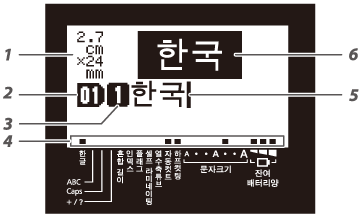 디스플레이는 현재의 설정 사항들과 입력된 글자들을 보여줍니다.