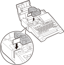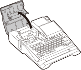 테이프 배출 슬롯에 테이프 끝을 넣습니다.