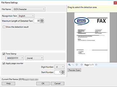 ajuste Nombre de archivo en Carácter de OCR y luego