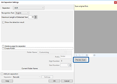 Dans Longueur maximale de texte détecté, Vous pouvez spécifier le nombre maximum de caractères maximum extraits du texte détecté dans la zone spécifiée utilisés pour le nom du fichier.