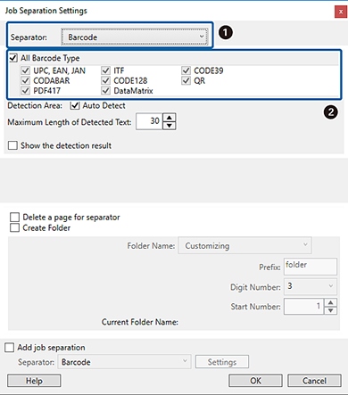 A l'aide des informations contenues dans un code-barres, vous pouvez séparer les fichiers en fonction de la page dont le code-barres est détecté, et vous pouvez créer et enregistrer des dossiers en utilisant les informations contenues dans le code-barres.