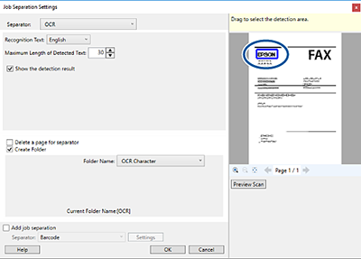 Tramite la funzione OCR (riconoscimento ottico di testo nelle immagini scansionate e conversione in testo leggibile), è possibile suddividere i file utilizzando il testo letto in un'area specifica e quindi creare e salvare cartelle utilizzando il testo riconosciuto.