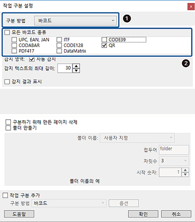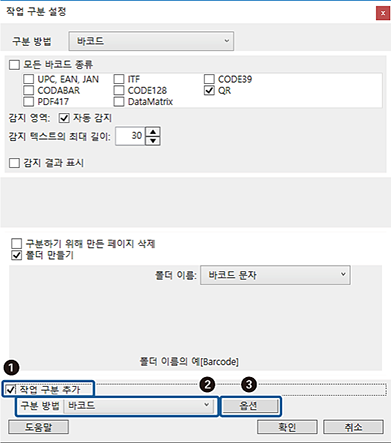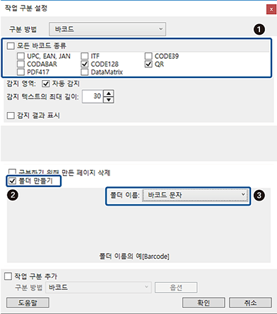 바코드로 구분 방법을 설정한 후,