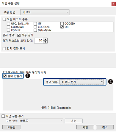 폴더 이름을 바코드 문자로 설정합니다.
