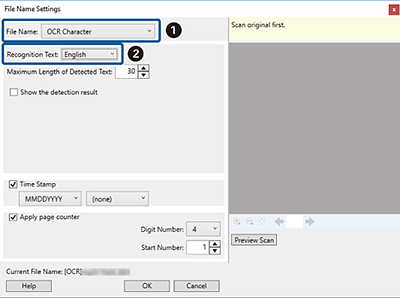 Menggunakan OCR (fungsi untuk mengesan teks dalam imej yang diimbas dan menukarnya kepada teks boleh dibaca), anda boleh membaca teks daripada kawasan tertentu dan kemudian menyimpan fail dengan nama fail menggunakan teks yang dikenali.
