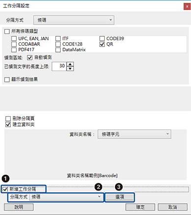 將 [資料夾名稱] 設定為 [條碼字元]。