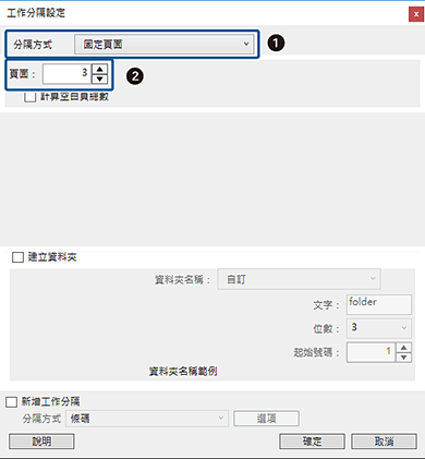 您可以根據指定的掃描頁數分隔資料,並將其儲存在檔案或資料夾中。