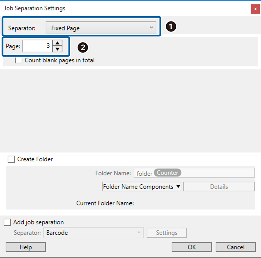 عند تحديد "3"، يتم فصل المستند بعد مسح كل ثلاث صفحات ضوئيًا.
