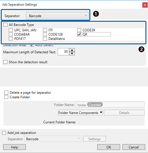 sélectionnez Code-barres dans Composants du nom de dossier et ajoutez à Nom de dossier .