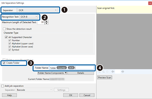 Dans Longueur maximale de texte détecté, Vous pouvez spécifier le nombre maximum de caractères maximum extraits du texte détecté dans la zone spécifiée utilisés pour le nom du dossier.