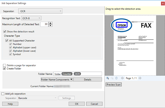 állítsa be az Elválasztó lehetőséget az OCR opcióhoz, majd