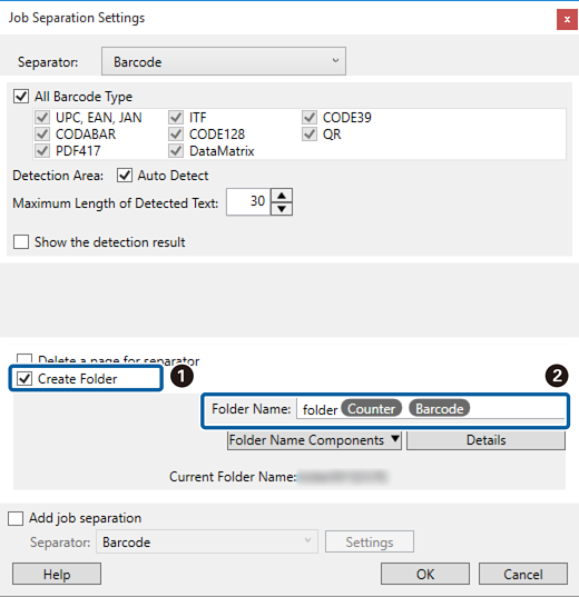 válassza ki a Vonalkód elemet a Könyvtárnév komponensek részben, majd adja hozzá a Mappanév lehetőséghez.