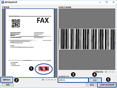 选择显示检测结果以检查条形码文本是否已正确识别。在扫描之后显示的屏幕上,可以检查已识别的区域和文本。也可以重新指定区域 (
