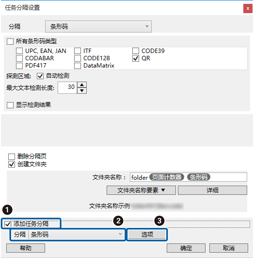 本节介绍“使用第一个条形码信息创建一个文件夹,然后使用不同的条形码信息在文件夹树中较低的级别上创建一个文件夹”的任务设置。