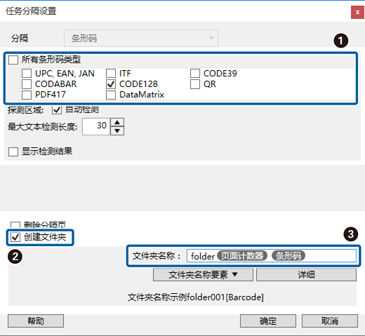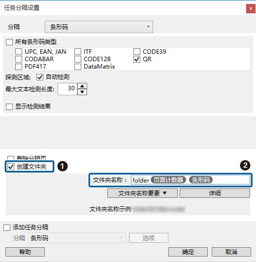 使用有关文档的两种类型的条形码信息,可以在文件夹树中创建并保存两个级别的文件夹。