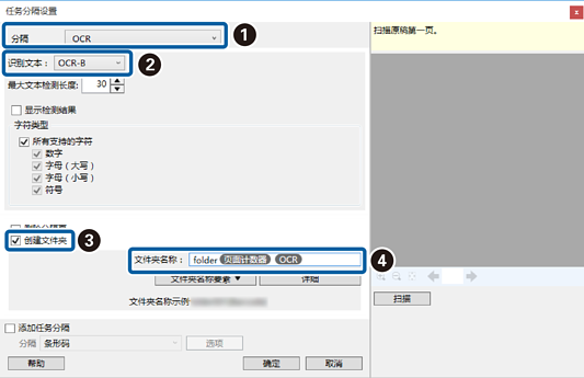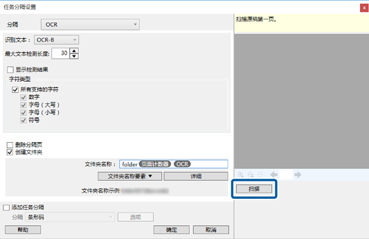本节介绍“使用在 OCR 中读取的文本创建并保存文件夹”的任务设置。