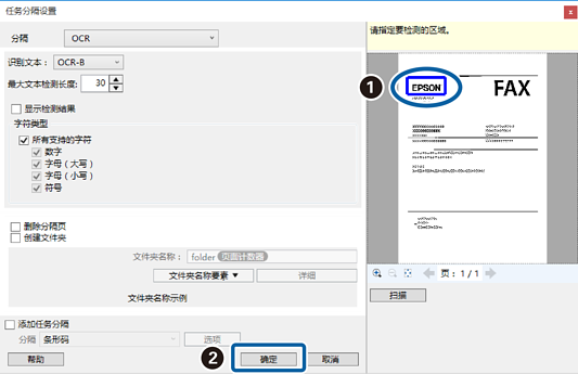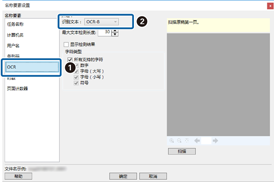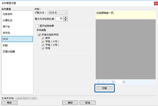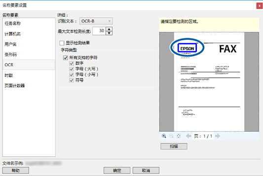 在最大文本检测长度中,可以通过在指定区域中检测到的文本指定用于文件名的最大字符长度。
