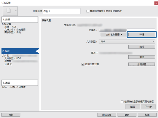 本节介绍“使用在 OCR 中读取的文本保存文件”的任务设置。