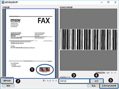 选择显示检测结果以检查条形码文本是否已正确识别。在扫描之后显示的屏幕上,可以检查已识别的区域和文本。也可以重新指定区域 (