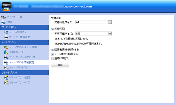 メールプリントの初期設定では、プリンターのメールアドレスに送られてきたメール全てを印刷します。