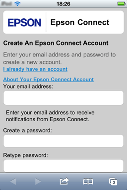 Het proces voor registratie van uw printer bij Epson Connect wordt gestart.
