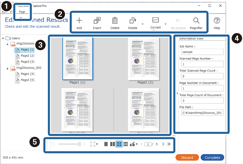 Essa tela é exibida quando a digitalização é completa se Mostrar caixa de diálogo Editar página antes de salvar for selecionado nas configurações de salvamento.