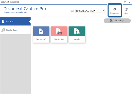 1Clique em Preferências na tela superior do Document Capture Pro.