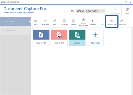 Ao importar um trabalho, você pode usar um arquivo de trabalho (.jxz) que você criou em um computador diferente e exportou usando o Document Capture Pro.