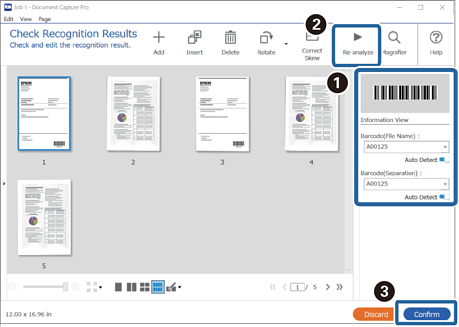 Usando as informações do código de barras, você pode dividir arquivos em cada página onde um código de barras é detectado, e pode criar e salvar pastas usando as informações de texto no código de barras.