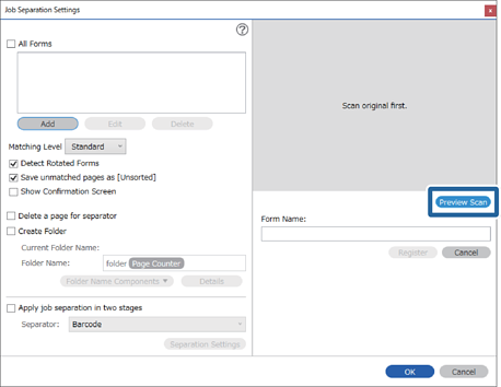 4Legen Sie die Vorlage des zu registrierenden Formulars auf den Scanner, und klicken Sie dann auf Scan.