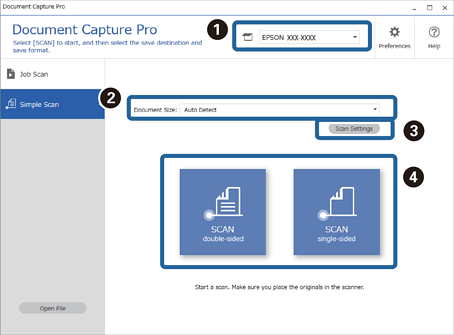 Lorsque vous démarrez le logiciel, il se connecte automatiquement au dernier scanner utilisé. Si vous souhaitez utiliser un scanner différent, vous pouvez le sélectionner depuis la liste du menu déroulant. |