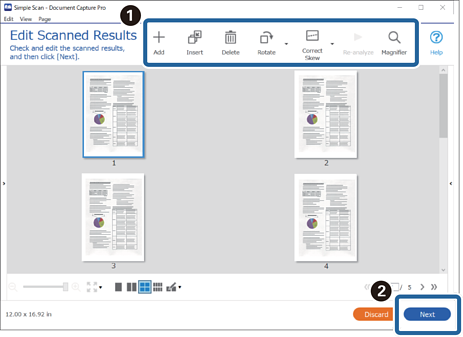 3Vérifiez les résultats de la numérisation sur l’écran Modifier les résultats numérisés, effectuez des modifications le cas échéant, puis cliquez sur Suivant.